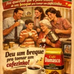 - Café Damasco forte, puro, brasileiro, faz questão que o povo inteiro de um breque pra tomar um cafézinho… propaganda que marcou época